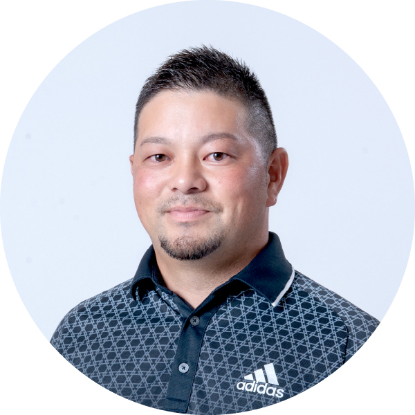 長身を生かしたダイナミックなフォームが持ち味。若手のホープとして、県内外で多くのお客様を指導。