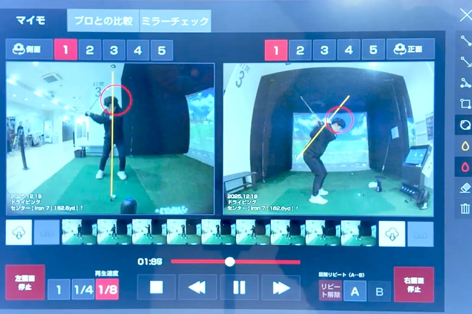 2方向からのスイングモーションの構成により、スイング分析の精度が向上し、練習に最適な環境を提供します。